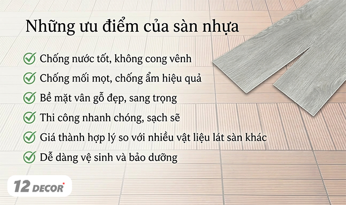 Sàn nhựa ngày càng được ưa chuộng nhờ những ưu điểm nổi bật: