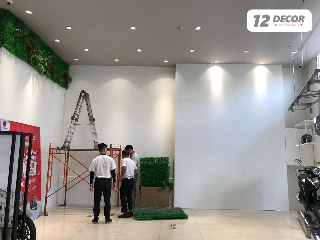 Hình ảnh thi công giấy dán tường cho cửa hàng Honda Hóa tại Cần Thơ