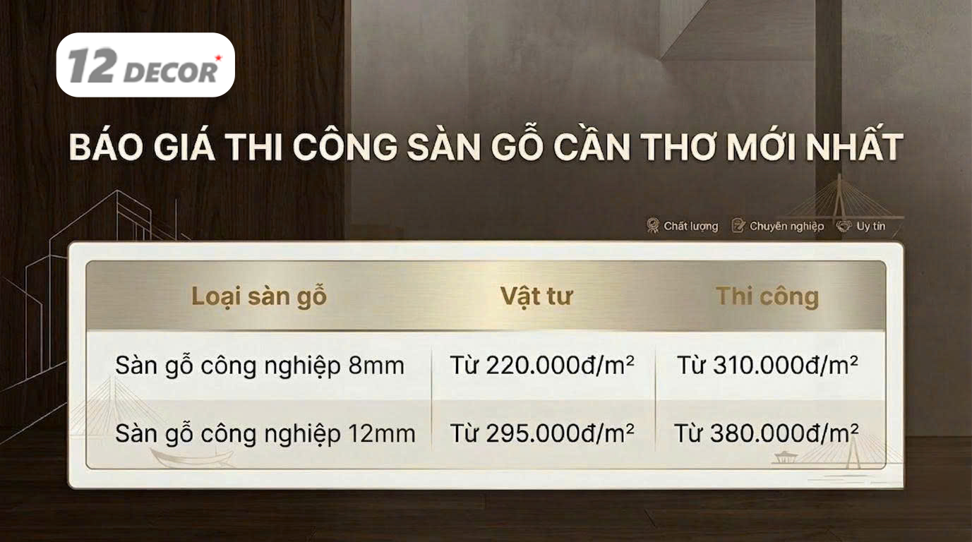 📌 Tại 12 Decor, chúng tôi chuyên cung cấp và thi công sàn gỗ trọn gói tại Cần Thơ, mang đến giải pháp hoàn thiện không gian sang trọng – hiện đại – tiết kiệm chi phí.