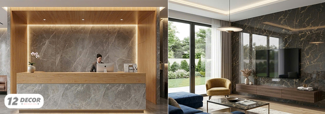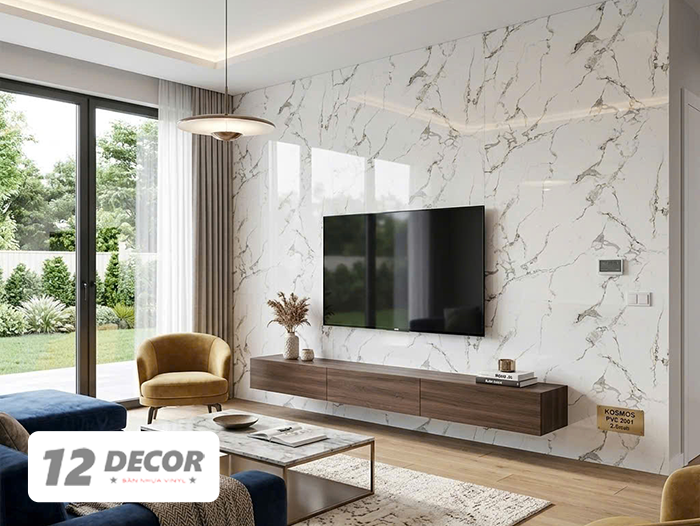 👉 Nhờ thiết kế vân đá, vân gỗ và họa tiết hiện đại, tấm ốp PVC Kosmos mang lại tính thẩm mỹ cao cho nhiều công trình nội thất.