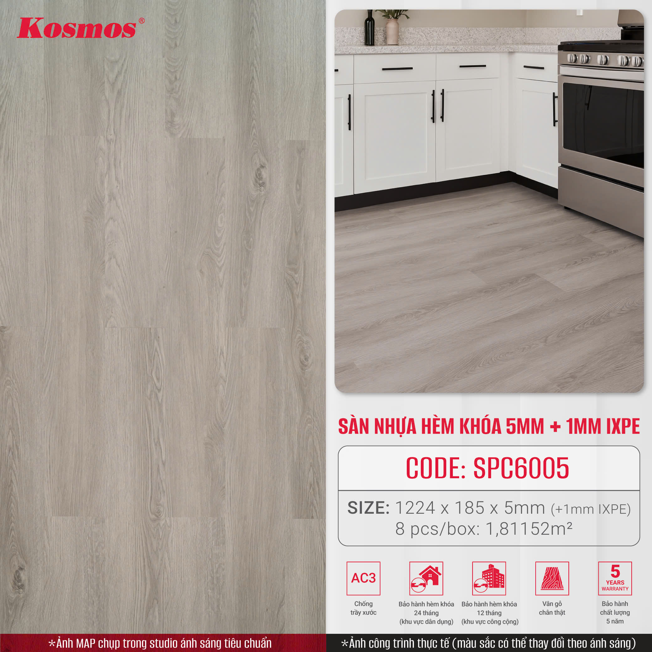 * Đặc điểm nổi bật của sàn nhựa hèm khóa Kosmos 5mm SPC - 6005