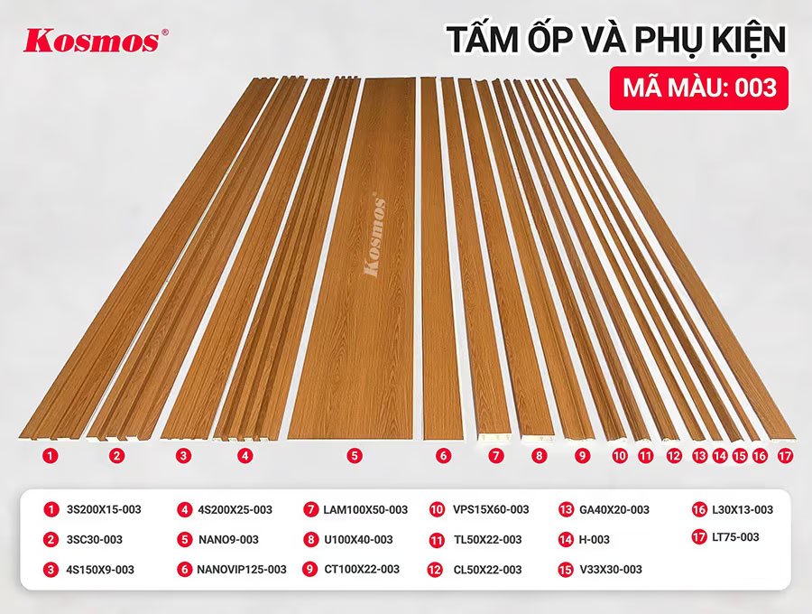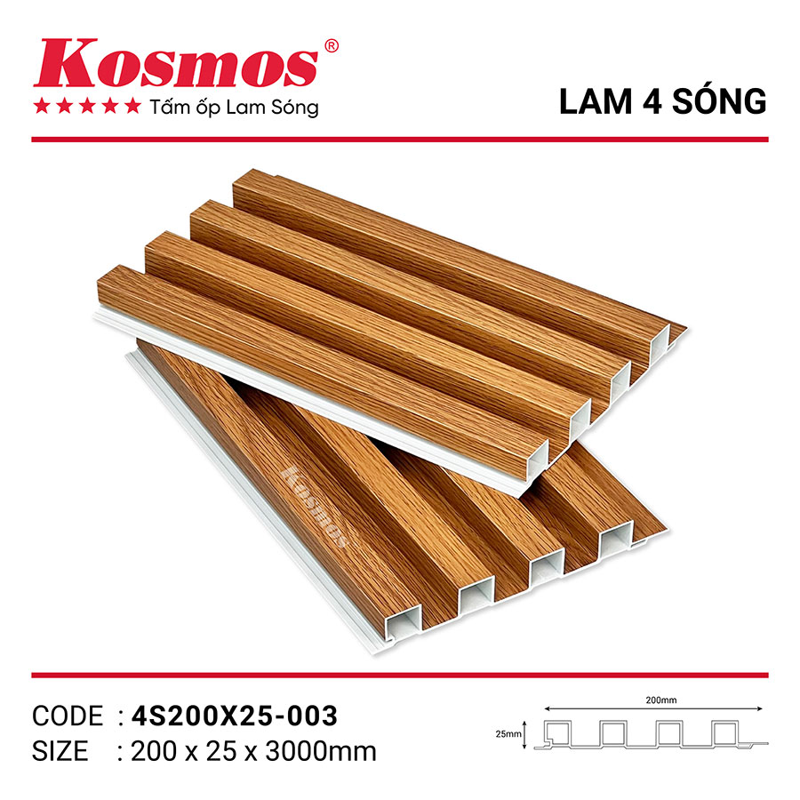 Lam sóng nhựa Kosmos vàng vân gỗ mã 4S200X25-003 được ứng dụng phổ biến để ốp tường, ốp trần, trang trí nội thất.