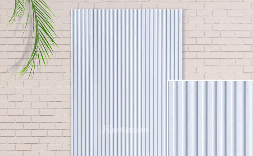 Tấm ốp lam sóng than tre vân giấy giấy trắng 6S821 được sử dụng để tạo điểm nhấn cho tường và trần nội thất, mang đến không gian sang trọng và hiện đại.