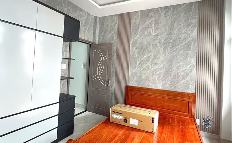 Tấm lam 6 sóng than tre vân vải xám ánh kim chống xước kết hợp tấm ốp than tre vân đá ốp vách đầu giường đẹp