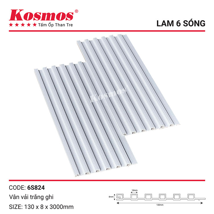 Tấm ốp lam sóng sợi than tre vân vải trắng ghi 6S824 sở hữu nhiều đặc điểm ưu việt: