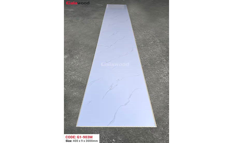 Sản phẩm này có màu sắc vân mây trắng, tạo ra một vẻ đẹp tinh tế và sang trọng cho không gian sử dụng. Với cấu tạo từ PVC và các chất khác như CaCO3, titanium dioxide, phụ gia, tấm ốp Nano Galawood G1-903M có độ bền cao và khả năng chống chịu tác động từ môi trường bên ngoài.
