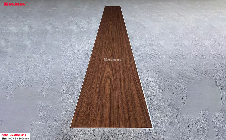 Tấm ốp Nano KNANO9-009 là sản phẩm trang trí nội thất cao cấp được làm từ nhựa SPC, có khả năng chống nước, chống mối mọt, chống cháy lan, cách điện hiệu quả. Sản phẩm có màu nâu trầm, gần với màu gỗ gụ, đường vân gỗ trung bình, độ sâu vừa phải, tạo nên vẻ đẹp sang trọng và hiện đại cho không gian.