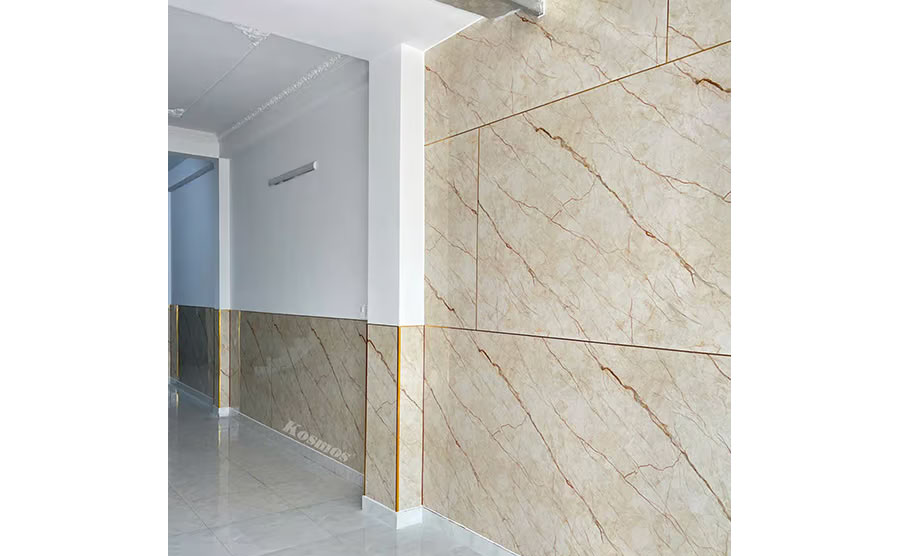 • Màu sắc tinh tế: Ánh vàng trên tấm ốp PVC không chỉ là một sự chọn lựa màu sắc mà còn là biểu tượng của sự ấm áp và phong cách. Màu sắc này tạo cảm giác thoải mái và gần gũi với môi trường sống, mỗi chi tiết của vân đá được tái tạo một cách chân thực, tạo điểm nhấn tuyệt vời cho bức tranh tổng thể.