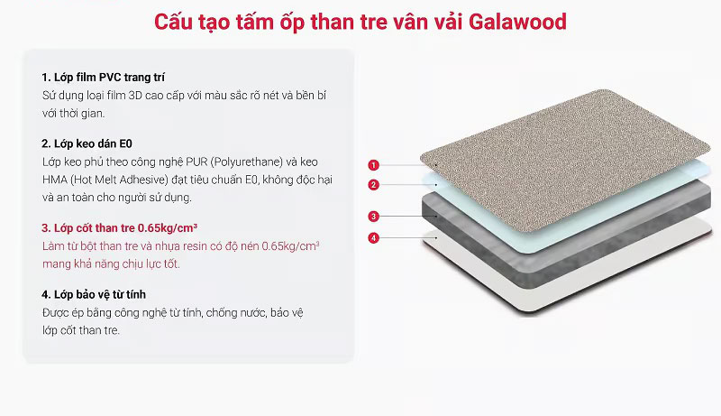 2. Cấu tạo tấm ốp than tre vân vải G-889 Galawood
