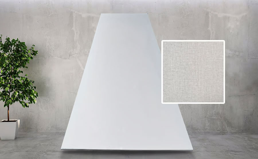 Tấm ốp G-889 sở hữu vẻ ngoài như vải vóc mềm mại nhưng lại có bề mặt cứng cáp, mang đến vẻ đẹp độc đáo cho không gian. Sản phẩm cho phép thi công nhanh chóng, rút ngắn tiến độ hoàn thiện công trình.